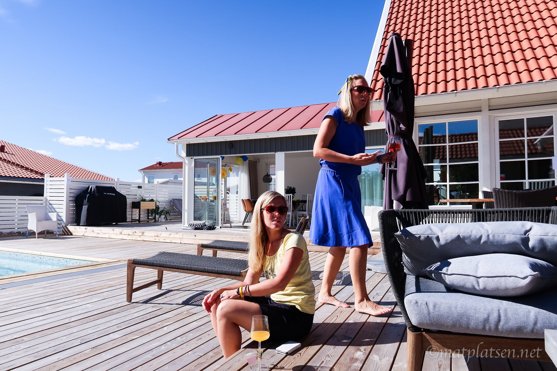 Vi njöt av solen och poolen, soft sommarmusik, somrig fruktbål och kallt vin.