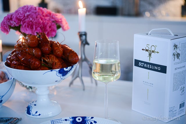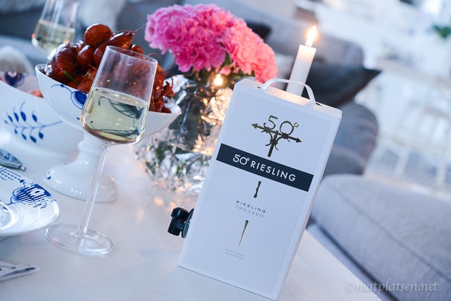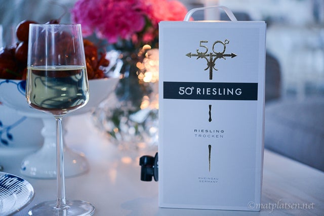 Riesling är ju en stor favorit och nu hittade jag den här söta lilla (2 liter) boxen (beställes HÄR). 50° Parallel Riesling Trocken. Snygg och lagom stor och framförallt är vinet jättegott! Passade ypperligt till skaldjur (och min man som inte är så mycket för vita viner tyckte också det var gott, bra betyg!)