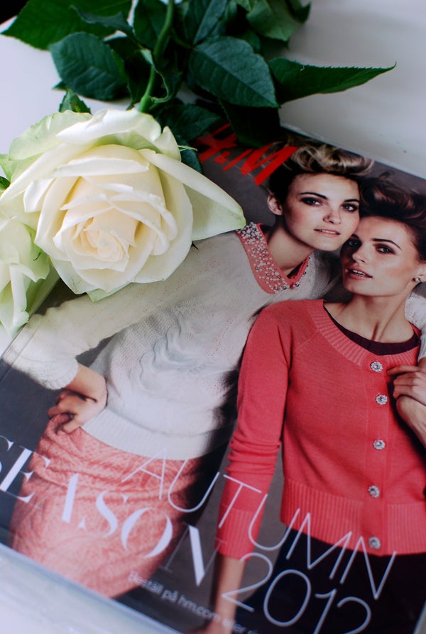 Grått och ruskigt ute som vanligt så jag sitter och bläddrar i H&M-katalogen till morgonkaffet och drömmer mig bort bland höstkläderna. Har ni kikat? Vad tyckte ni? Inte så mkt som föll mig i smaken i år faktiskt men några små plagg tänkte jag hålla utkik efter. Bla en söt randig stickad klänning och ett par knallcerisa byxor.