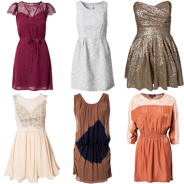 Vinröd sötsak från Vero Moda. Gråmelerad klänning från VILA med grymt snygg rygg! Söta guldglitterklänningen kostar bara 199 kr, kap! Ljuvlig sommardröm från Little Mistress. Cool klänning från Ichi. Rostfärgad klänning med spets från Dry Lake.