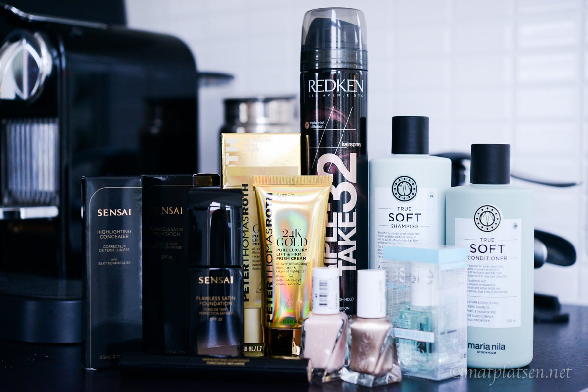 Foundation från Sensai, den är en favorit jag använder varje dag (spf 20). Concealern är grym.  Redkens hårspray har jag flera olika, denna är lite starkare och håller genom en storm.