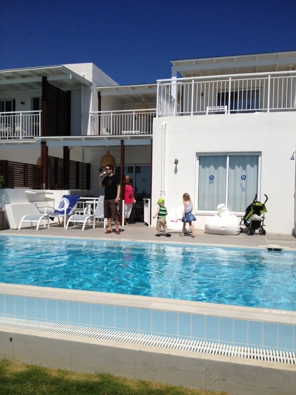 Hunnit doppa tårna i havet (lite kyligt – men helt ok) och nu ska jag doppa mig i poolen innan det är dags att hämta upp Olivis efter indianäventyret!