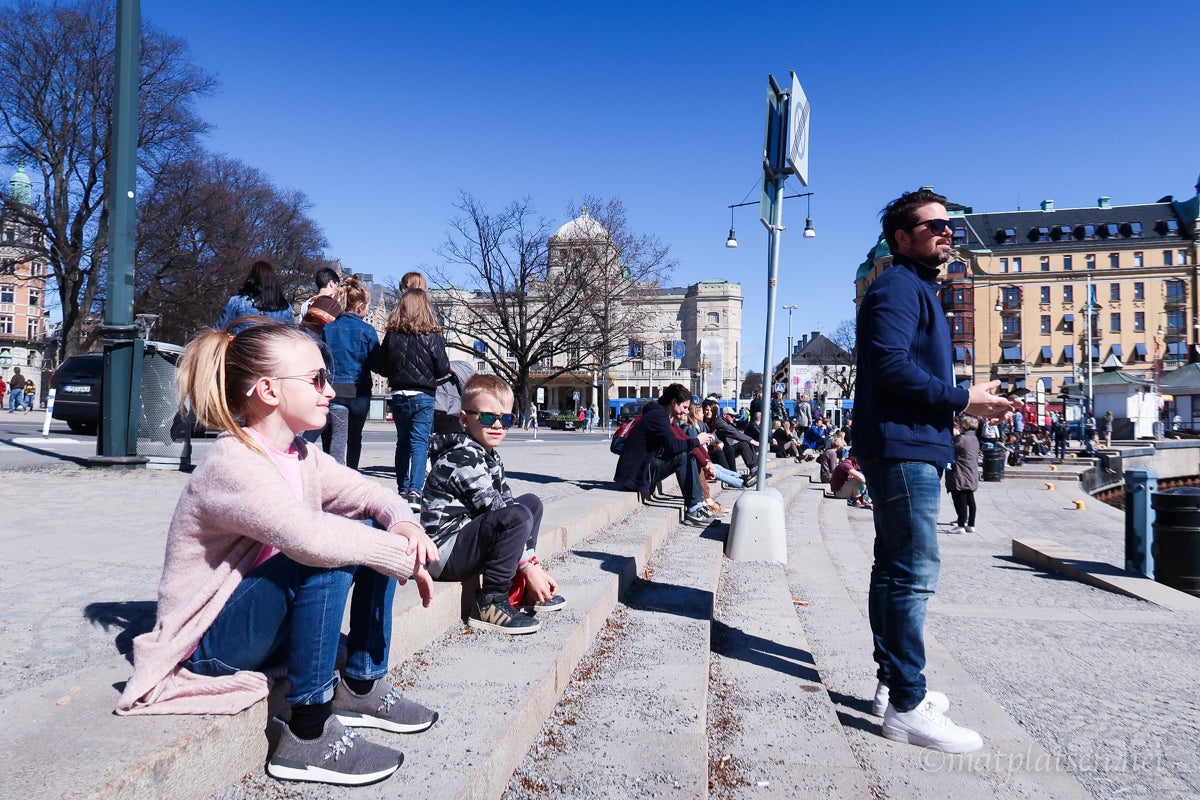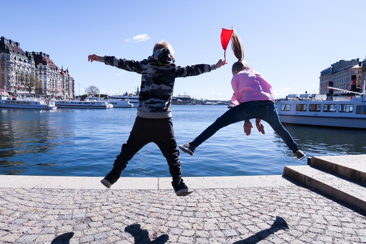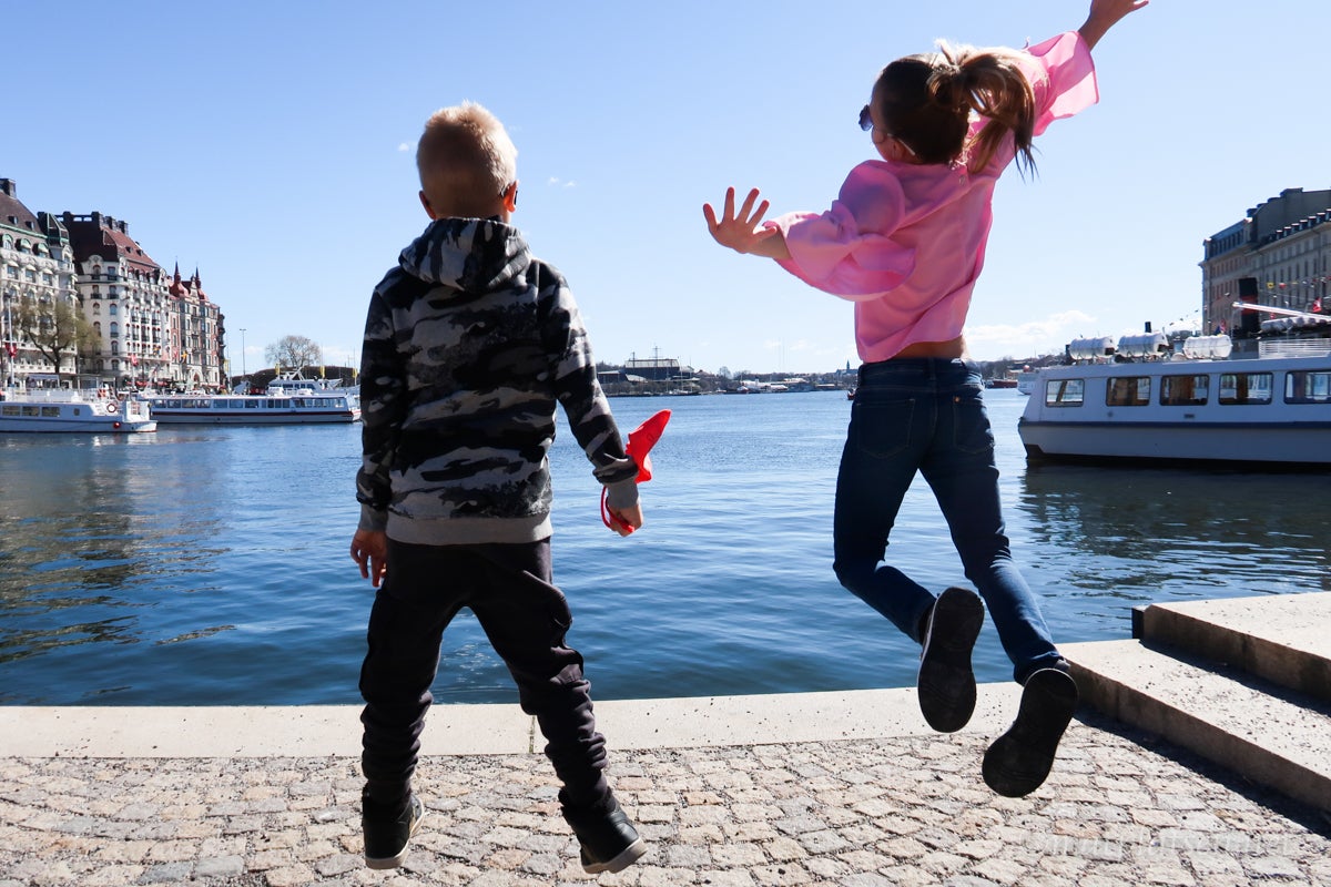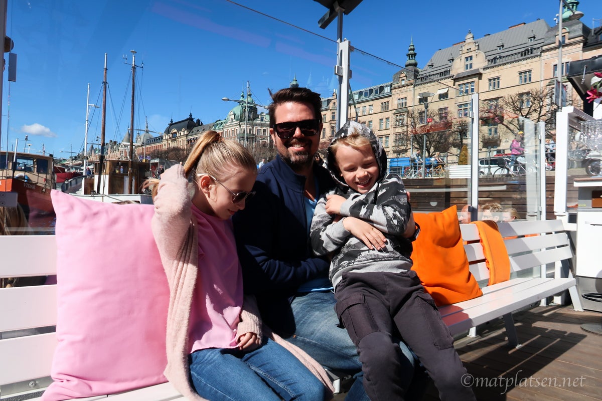 Stockholm bjöd på strålande väder. Underbart! Lycklig ut i fingertopparna. Barnen flög omkring mer i luften än på marken. Stannade till vid strandbryggan (heter det så?) för energipåfyllning.