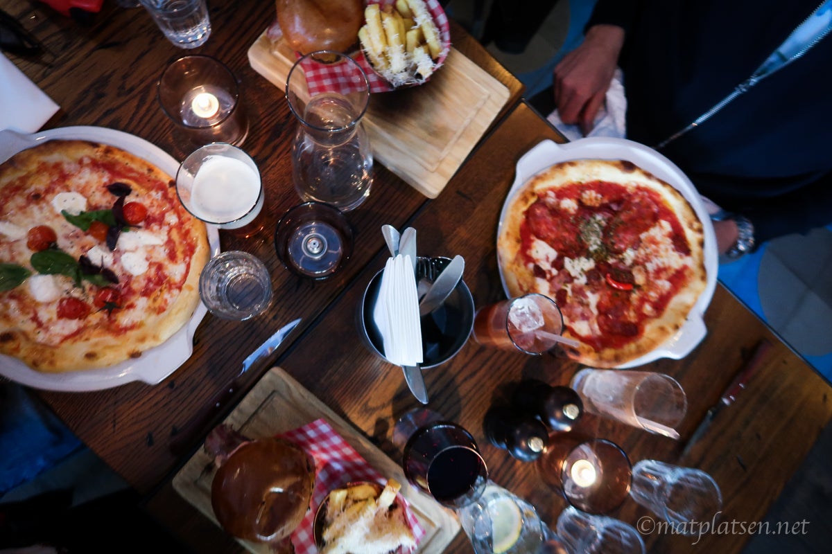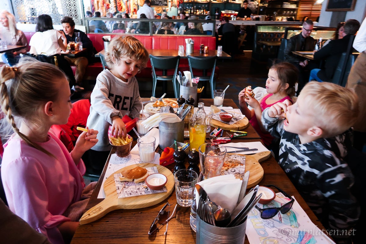 På kvällen mötte vi upp Linda med fam för middag på Jamies Italian. Barnvänlig restaurang absolut men lite trött service tyvärr. Hamburgaren var ingen hit och pommesen snustorra. Killarna gillade dock pizzan och barnen var nöjda, ett sånt ställe man går till för barnens skull kanske. Sällskapet var i världsklass.