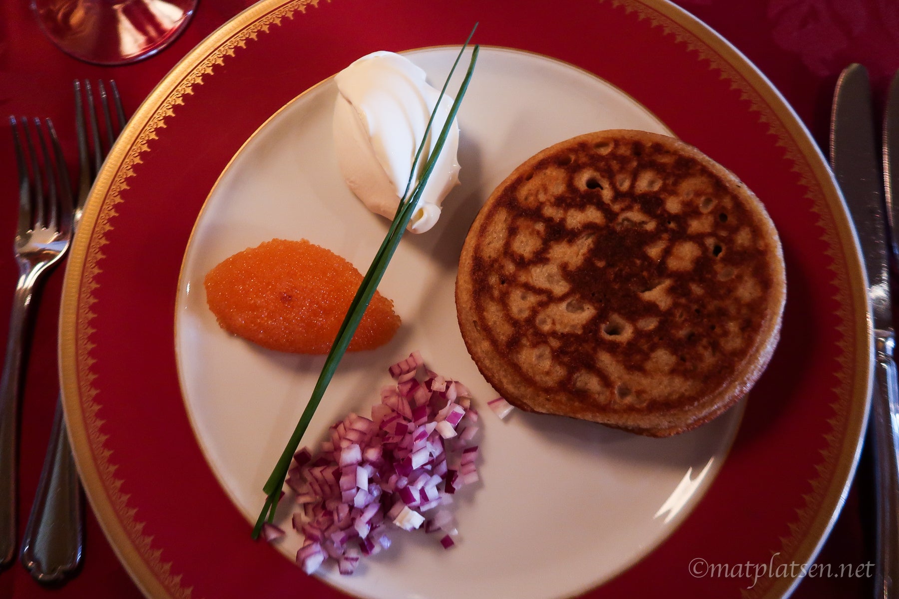 Sen beställde vi ännu en rysk specialitet, blinier. Med löjrom och tillbehör. Mums!!
