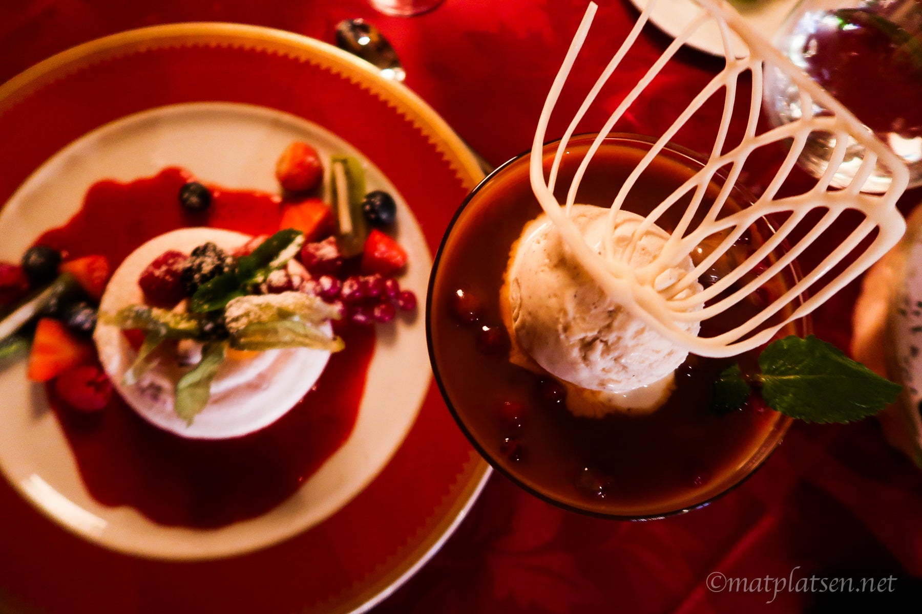 Till huvudrätt en kyckling kiev och oxfile med stuvad kål som vi delade på (gör nästan alltid så, beställer lite olika och delar på allt) och en pavlova (också ryskt va?) och en skapelse med glass, kolasås och tranbär. Så mätta! Och så grym service, urtrevliga.