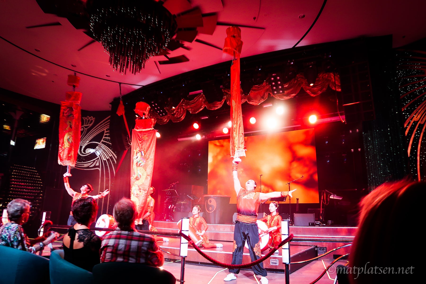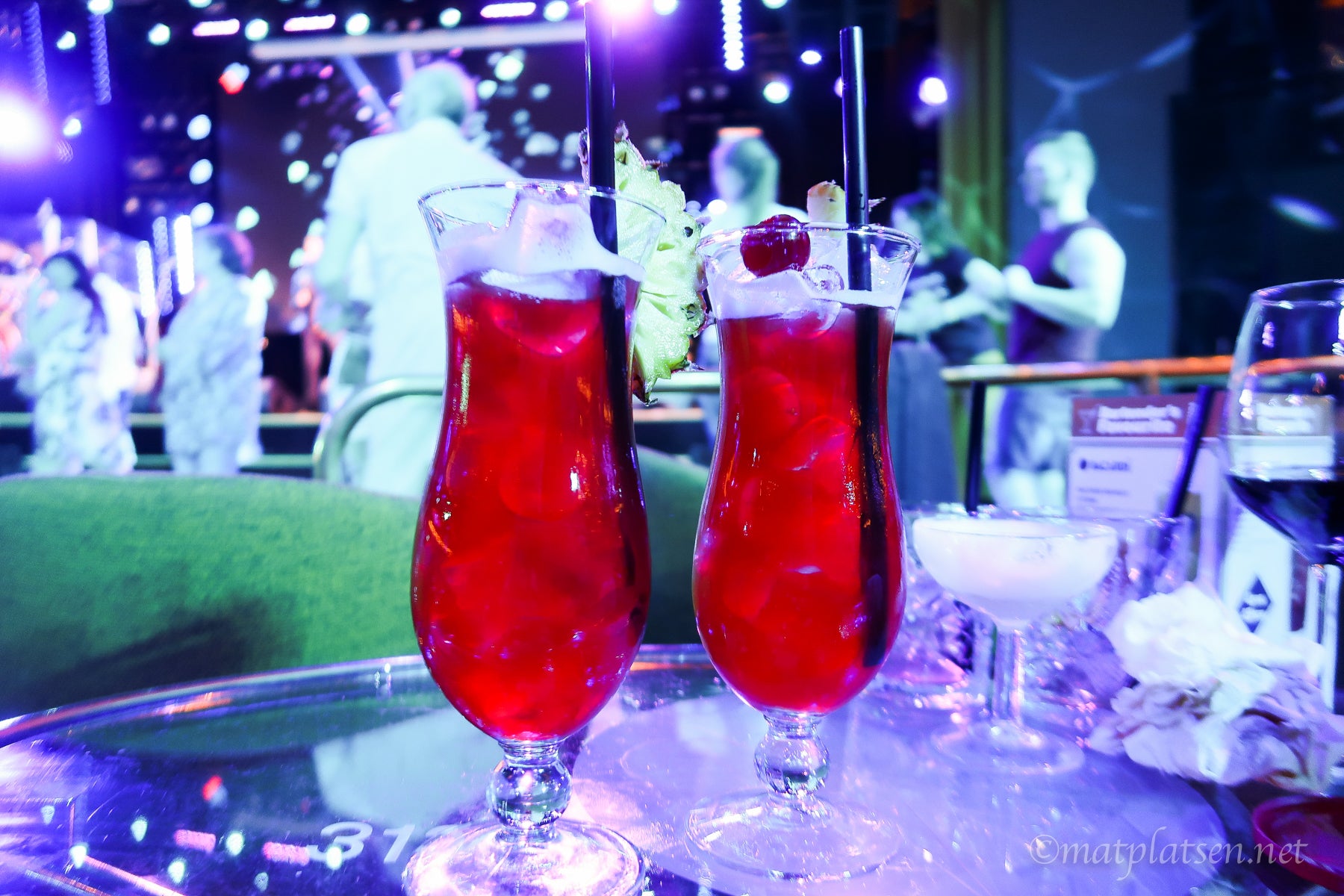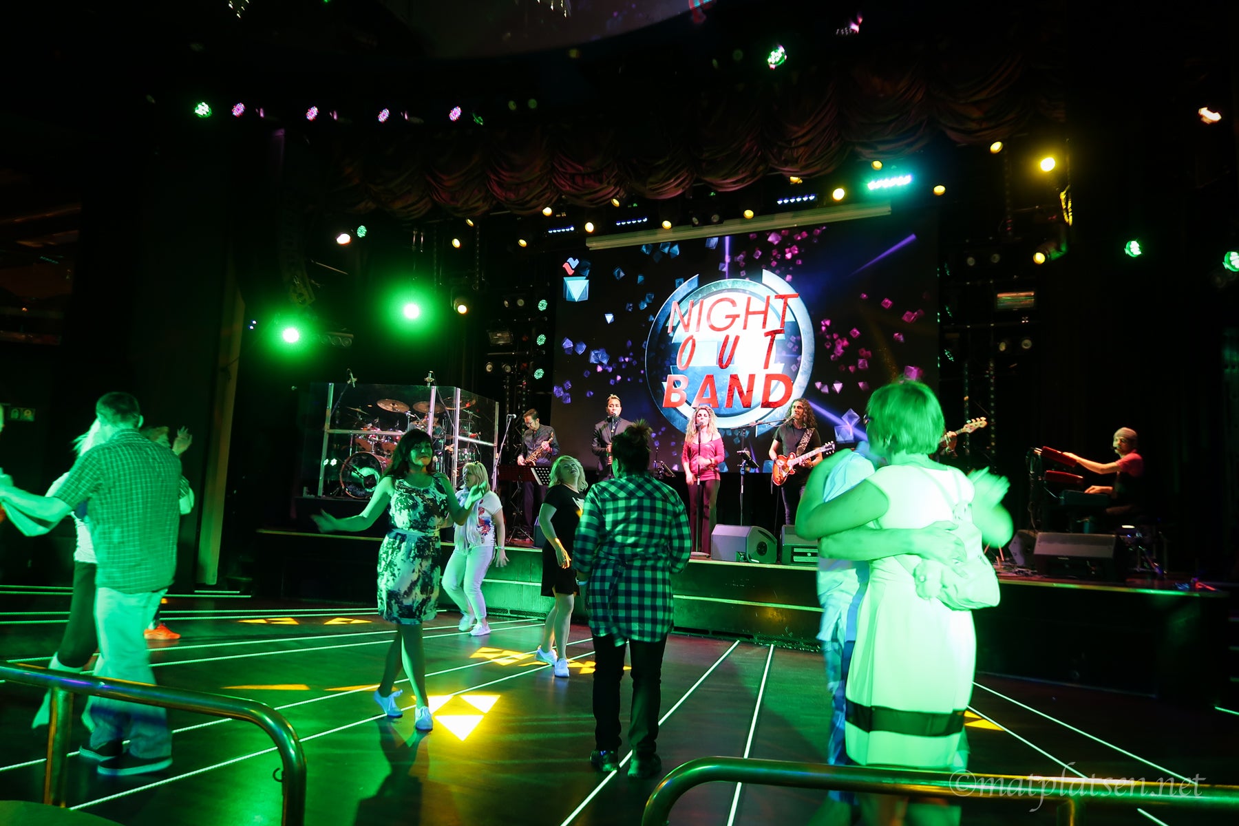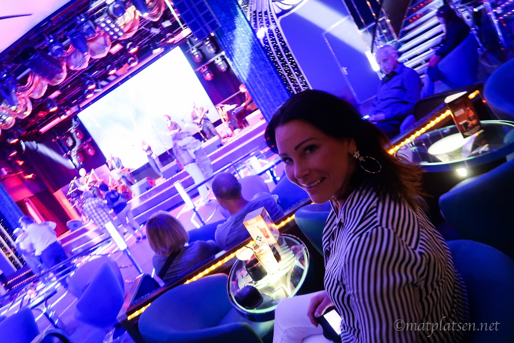 Ingen båtresa utan cocktails och underhållning. Slog oss ner och lyssnade på bandet och kollade på alla som dansade styrdans för glatta livet och sen blev det lite otippat cirkusshow.