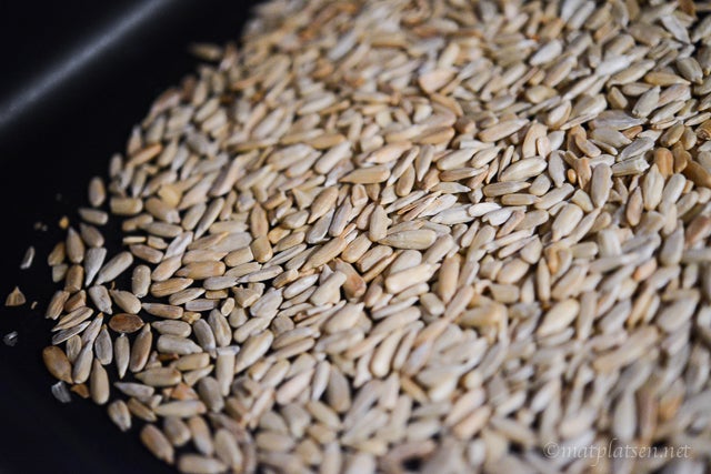 Rosta fröblandningen i ugnen 200 grader ca 10 min, tills de fått lite färg (rostningen förhöjer smaken rejält på fröna).