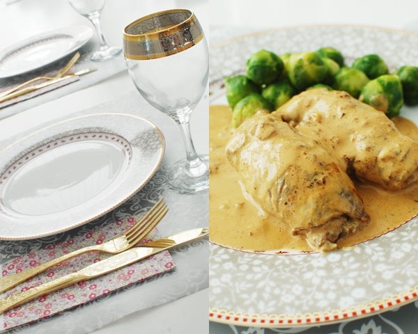 Koka upp såsen och häll den över rulladerna. In i ugnen 225 C ca 30 min.