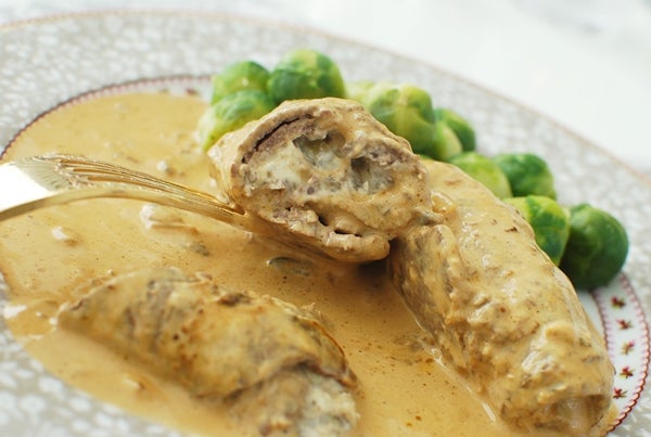 Lovade ju att återkomma med de smarriga rulladerna vi åt till vinprovningen förra veckan. Svamp och färskostfyllda lövbiffsrullader i gräddig sås, yummi! T.o.m mina kräsna barn åt med god aptit 🙂