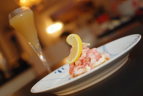 Gräsänka i går kväll, roligt ord tycker jag 🙂 Lyxade till med en räkmacka på smörstekt surdegsbröd med favoritcoctailen Bellini till. Har äntligen fått tag i vit persikopuré  (sån de använder i barer!) och det blev en perfekt Bellini!