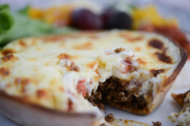 Vi testade de nya ”båtarna” från Old el Paso, Stand ’N’ Stuff Tortillas. Åt några som vanliga tacos (barnen älskade dem!) men testade att göra tacopaj av några och det blev bara såååå gott!! Mjukt och knaprigt skal på samma gång och krämig tacopaj i – mums!! Ny favvo.