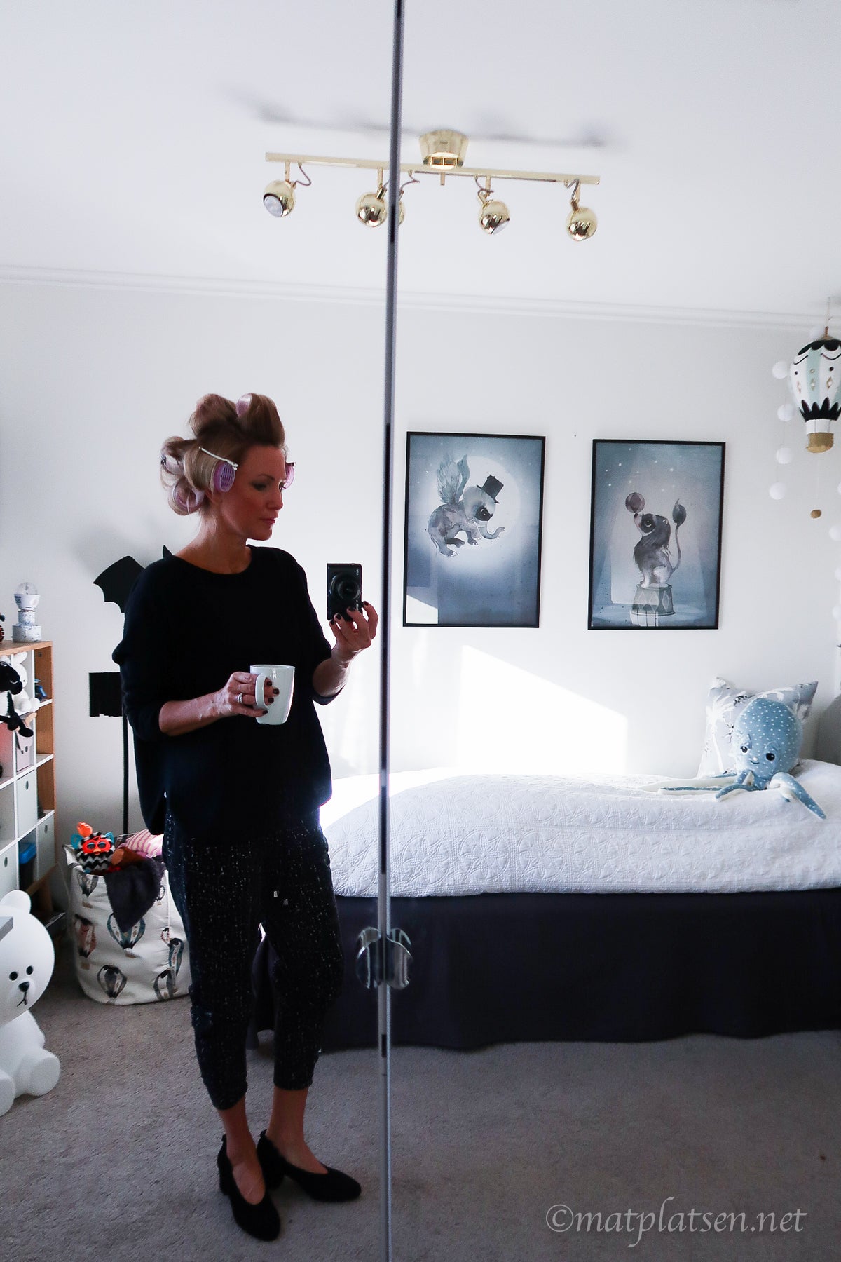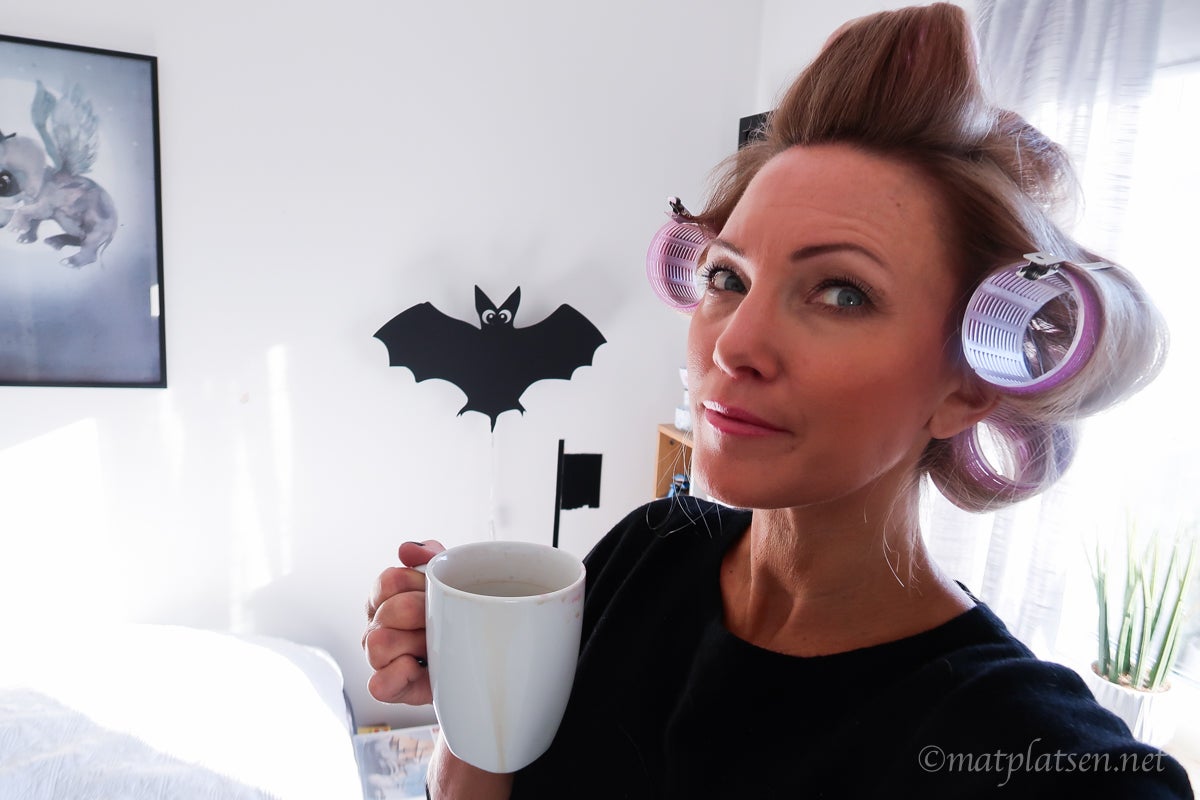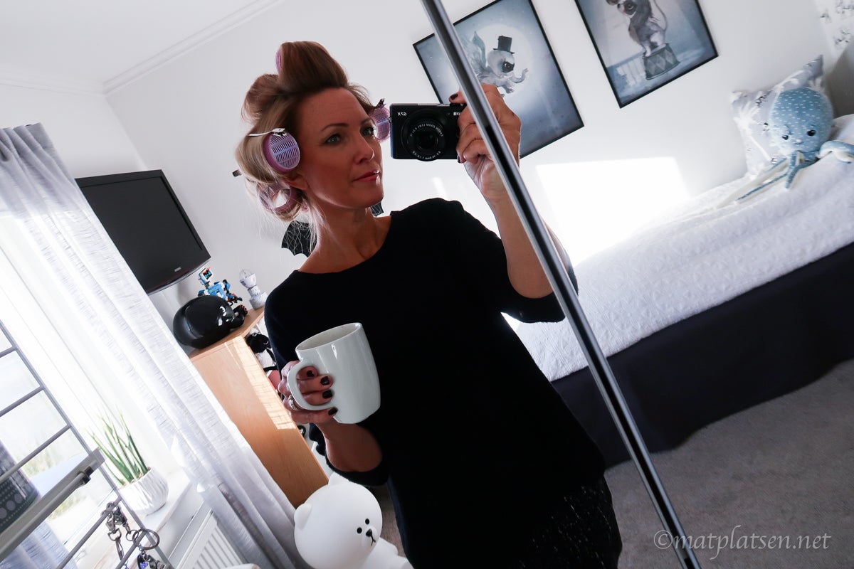 Varför springer jag runt i klackskor och papiljotter här på morgonkvisten undrar ni kanske? Händer det nåt kul i dag? Nix! Jag ska jobba hemma. Men jag är sååå trött på min sunkiga uppsyn, just för att jag oftast jobbar hemma och inte träffar nån så går jag i samma mjukiskläder tills de nästan går i väg av sig själva, sminkar mig inte, fixar inte håret. Blir ju knappast piggare av det? Totalt oinspirerad blir jag och det är ju varken kul för mig eller min blogg.