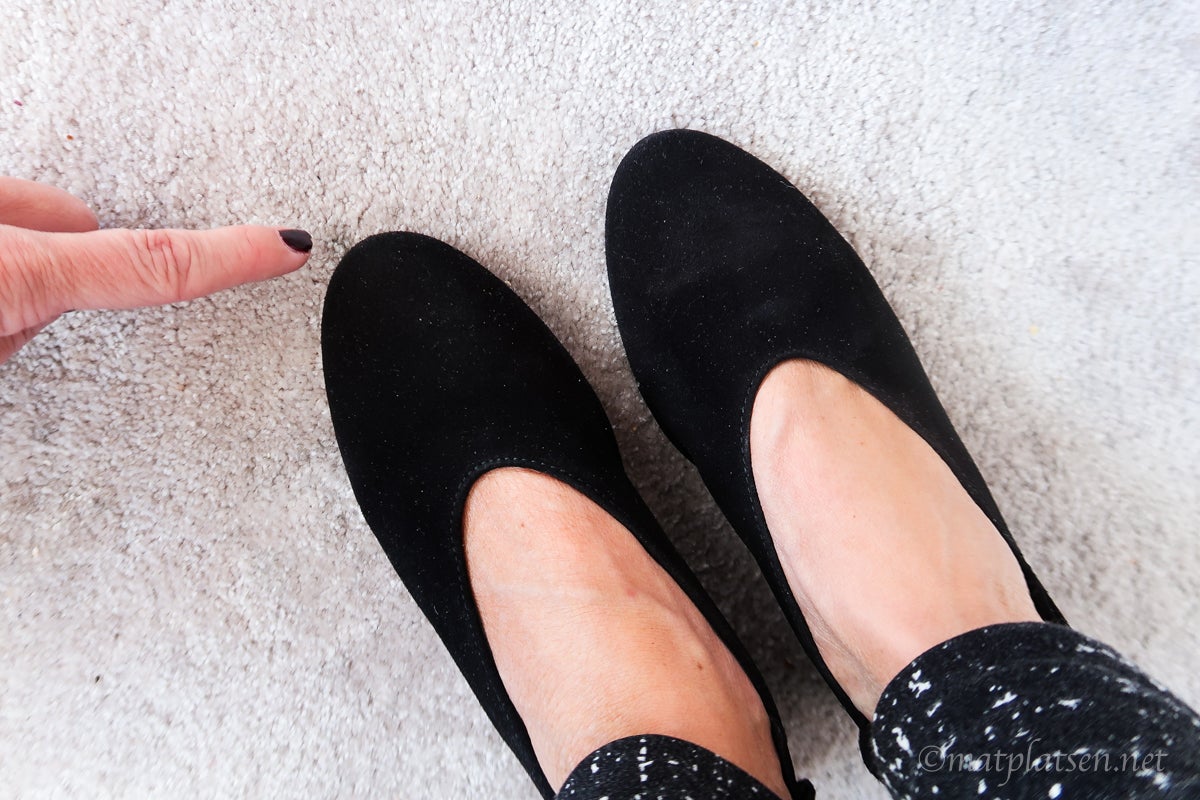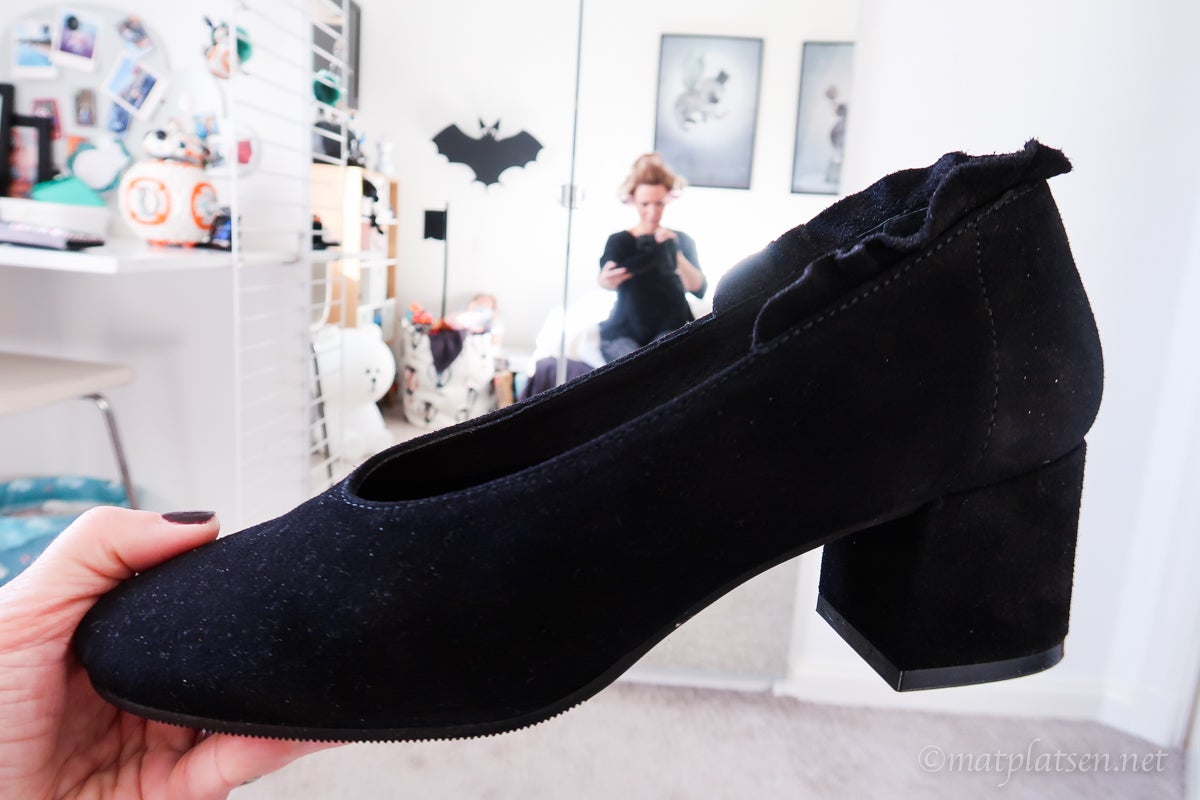 Klackskor inne är kanske att ta i tycker ni? Hehe ja jag håller med. De är på för att jag gett mig tusan på att gå in dem så de blir så där superdupersköna så jag vill gå i dem jämt. Klack = snyggare hållning. Höga klackar känns ouppnåeligt så jag börjar med dessa låga. Riktiga damskor. Eller tantskor. Men jag älskar tant/dam-mode, det bästa med att bli äldre! Lite fulsnygga sådär och sköna. Fast just nu är de lite för trånga i vänster stortå (aj) och skär in ovanpå höger fot (aj) men det kan väl tänja ut tänker jag? Trägen vinner. (Lyckas jag så ska jag kanske unna mig ett par såna där dyra pumps från Stinaa.J som ni tipsade om och skulle vara sååå sköna).