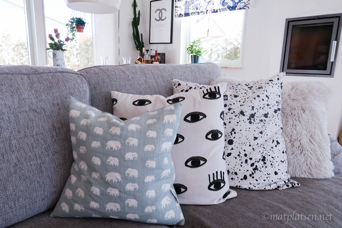 Tack 🙂 Puffarna är grå (halva ljusgrå halva mörkgrå du ser bättre här http://www.matplatsen.net/2016/02/05/blatt-och-vitt-och-skvatt-prickigt/ ) Från Ica maxi men 2 år gamla. Kram
