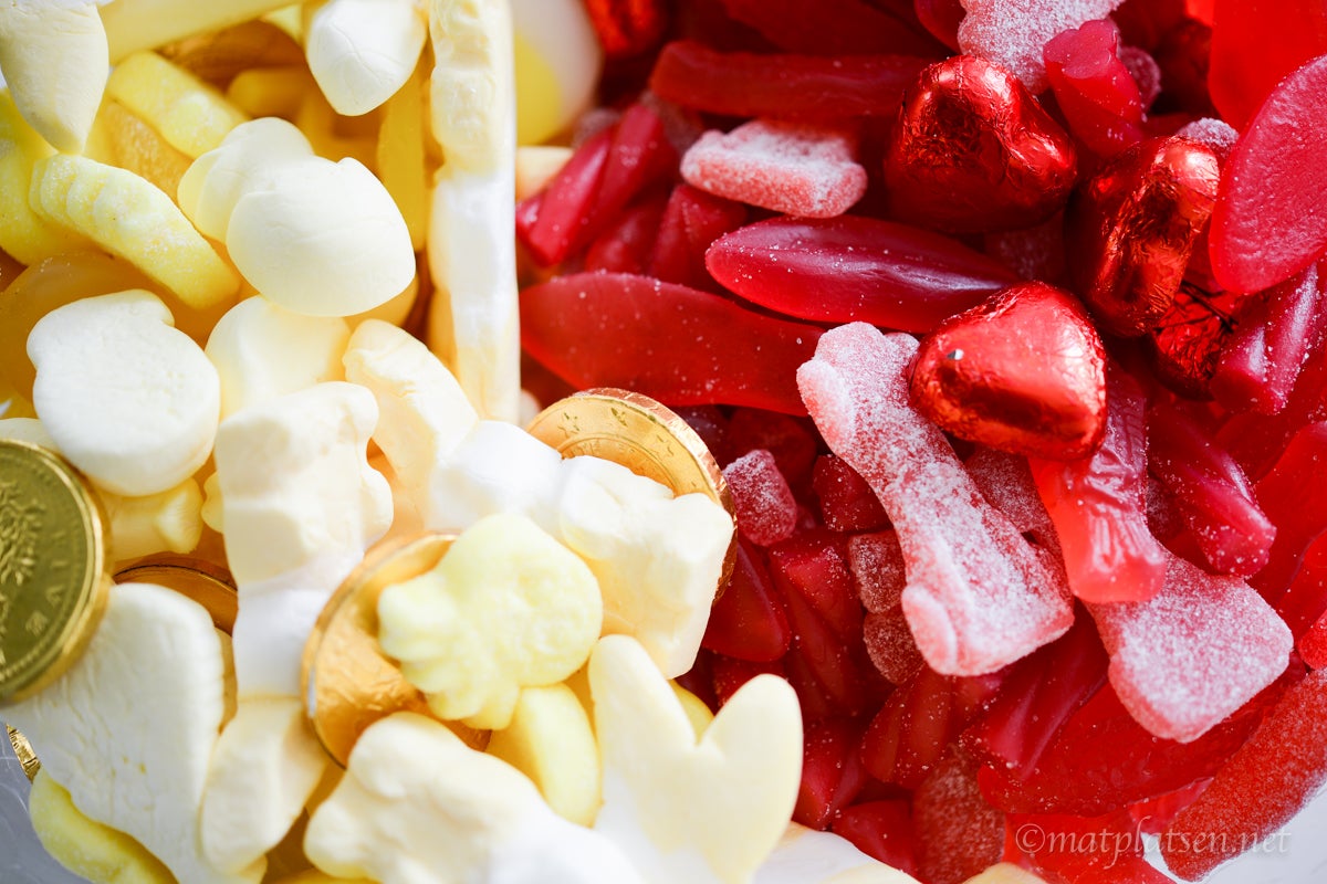 Gjorde stor regnbåge med guld och moln av godis, och 12 krukor med ”guld”cheese popcorn mm
