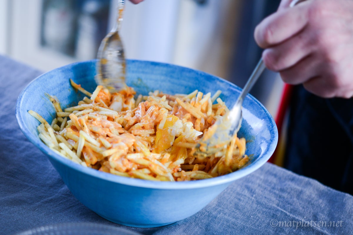 9. Blir lite nyfiken på en av bilderna nämligen där du visar vad jag tror är pommes? Blandat med ägg ? Jag åt något liknande när jag var I Barcelona sist och det var så himla gott.