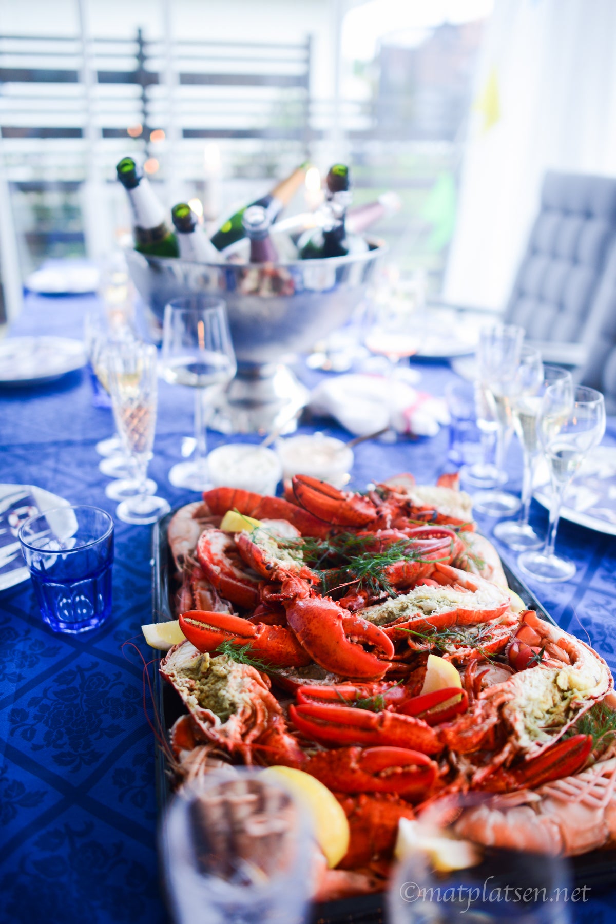 På kvällen svirade vi om till tenniskläder a la Båstad och började med champagneprovning (så kul!) och en dignande skaldjursuffé. Försökte mig på att provsmaka ett ostron men det gick bara inte, yak. Man kan inte gilla allt 😉