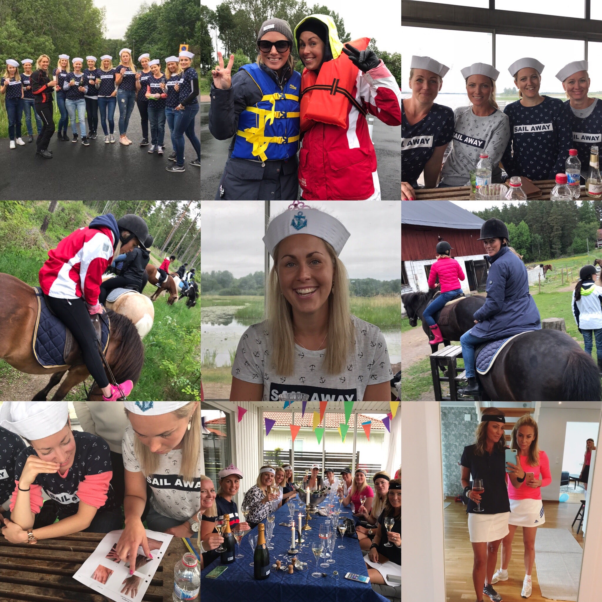 Efter lunchpaus och kul gissningslek (Tessan skulle gissa vilka kroppsdelar som var hennes man, vi hade fotat smalben/knä/underarm/hand/öra på våra män och sen skulle hon gissa vem som var Matte – 2 rätt tror jag hon fick haha) så åkte vi ut och red på islandshästar. Det känns i dag vill jag lova. Ajaja min rumpa! Smått livrädd för hästar och inte ridit sen jag var liten men det var ju superkul verkligen. Red ut i skogen på varsin häst och skumpade fram i ”tölt”. Vilken upplevelse! Kände oss som proffs efter ett tag 🙂 Mindre proffsig i dag, kan knappt sitta..