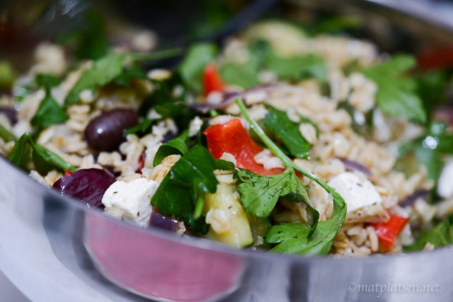 1. Det var rostade grönsaker + kokt matvete + grönsallad och grönsaker blandade till en sallad. Kram