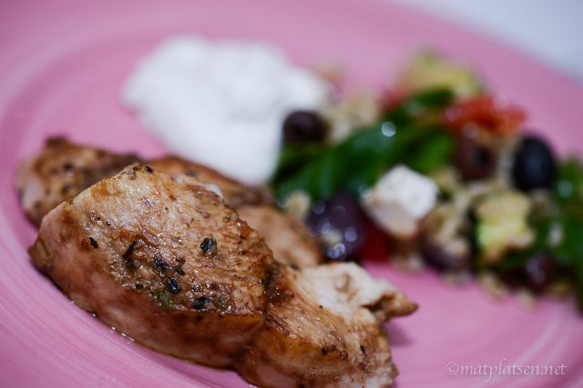 Förra veckan var vi hos Malin och fick smarrig kyckling med sallad på bla matvete (aldrig ätit förut – trodde jag, men det hade jag visst haha) med sås på crème fraîche, fetaost och vitlök. Till dessert blev det en smarrig cheesecake med lemoncurd och godsaker i.