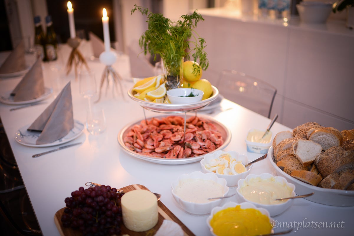 Tisdag = tjejmiddag med grannfruarna. Häromveckan var det min tur och jag bjöd då på räkfrossa! Med hemlagad majonnäs, saffransaioli, romsås, bröd och ost till.