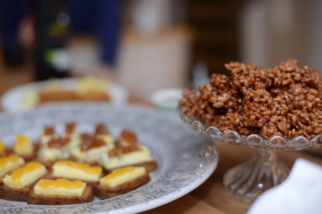 Till ”förmingel” bjöds på glögg (denna var riktigt god, tips tips!) med tilltugg. Marsgodis (recept HÄR) och rostad mjuk pepparkaka med ostar. Detta måste ni testa, supergott!!
