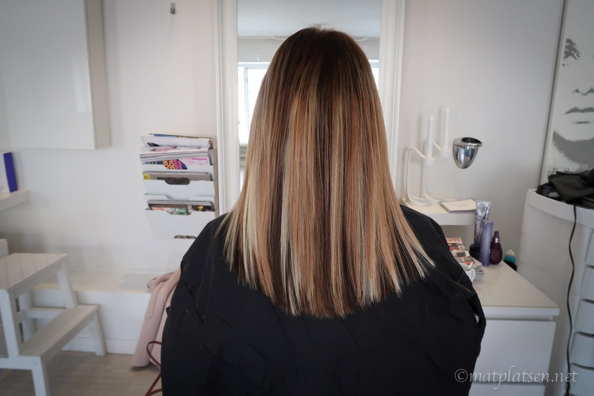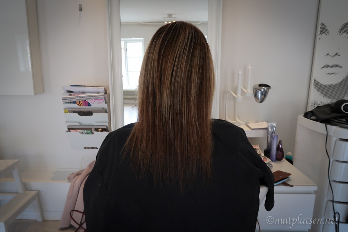 Blir lite ”randigt” så här, bättre efter en tvätt när allt blandar sig. Skönt att vara uppfräschad, dagarna innan ett inbokat frisörbesök känns håret alltid hopplöst, men efter ett frisörbesök känner man sig som ny.