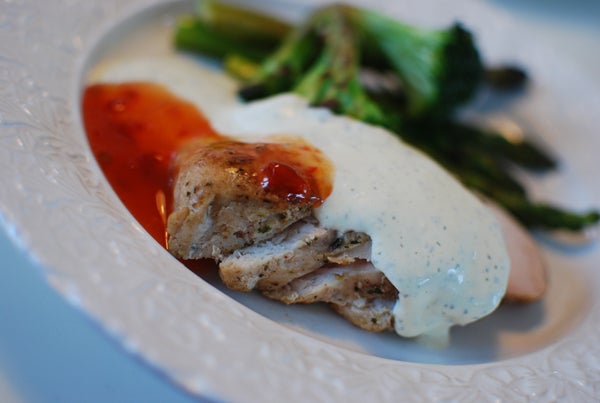 Passar på att tispa om en himla god kall sås. Passar fint till allt grillat, kött och kyckling. Nu åt vi den till möra kycklingfiléer (bryn först i panna, kör sedan klart i ugn 150 C ca 15-20 min). Såsen rör ni ihop på 2 dl creme fraiche + 3 msk majonnäs + 1-2 tsk persillade + salt & peppar. Låt stå i kylen och dra, gärna över natten. Mums! (man kan gärna hacka ner en liten vitlöksklyfta för extra vitlökssmak om man vill!) God i kombo med sweetchilisås!