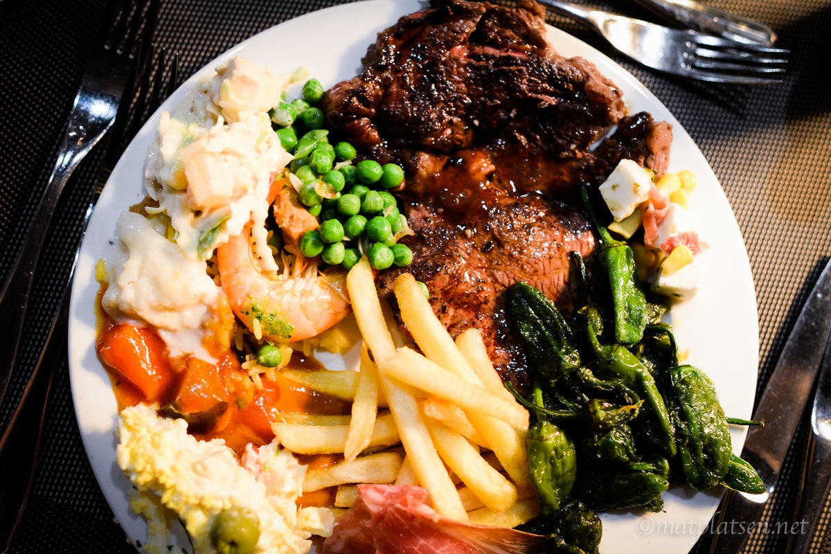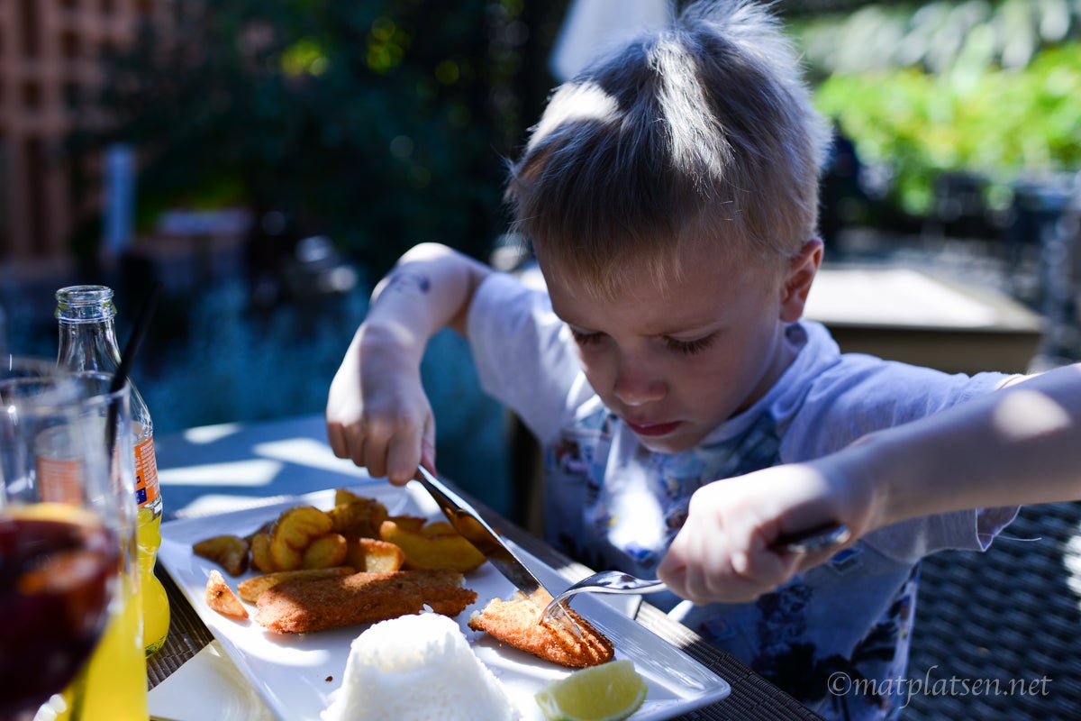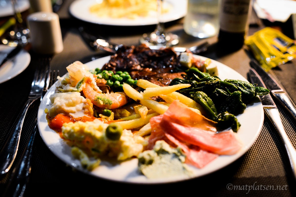 Gårdagens på väg mot restaurangen. Bland det bästa är ju att det är l j u s t länge på kvällen. I går var vi dock rätt sena till middagen så det började mörkna men nu när jag sitter och skriver är det fortfarande ljust ute och nån timma tills solen går ner. Så pigg man blir!