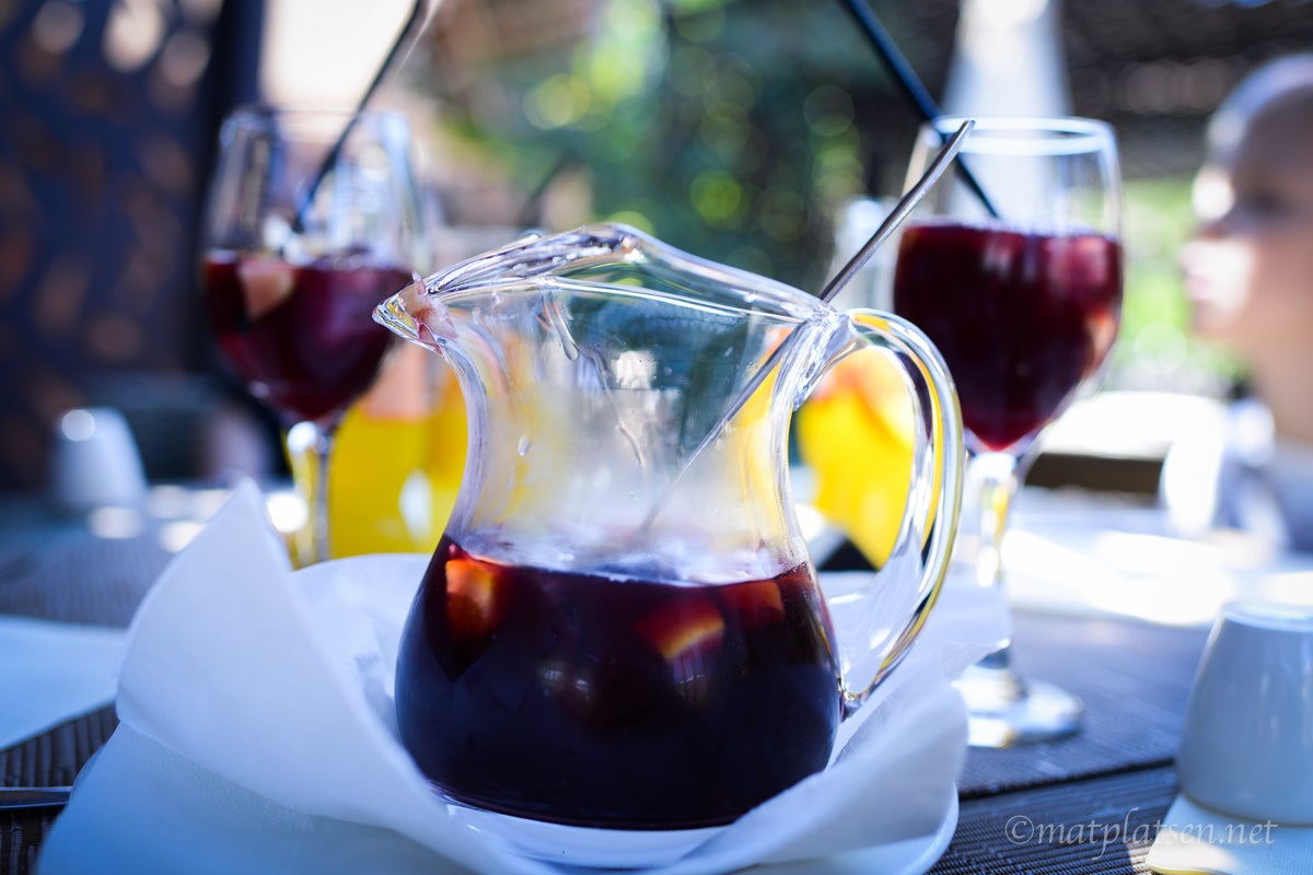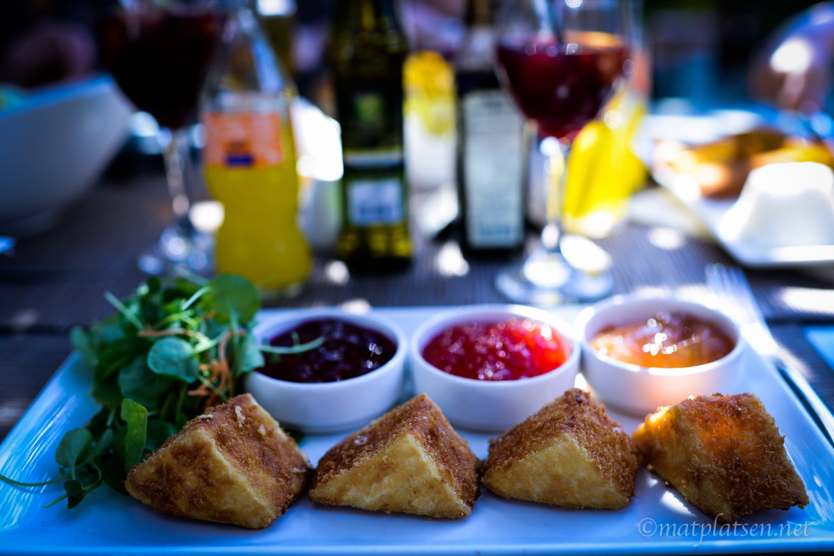 Här har vi njutit av en hel del sol i dag (sköönt) och en del moln (brrr yllekoftan åker på vid poolen då men det verkar som jag är den mest frusna på området, ingen annan i yllekofta har skådats :-)) Mest sol faktiskt, över förväntan. Gick inte i väg för lunch i dag utan åt på en av restaurangerna på hotellet och det var den b ä s t a lunchen. Alltså EVER tror jag. (Eller nä näst bästa, DETTA är fortfarande mitt absoluta bästa lunch-moment).  Beställde friterad brie med marmelader, helt magiska!! Sangria till det, glada nöjda barn (som också åt bra kors i taket, det är sällan de gör det men på semester får man beställa vad man vill och äta hur mycket eller hur lite man vill, man överlever väl en vecka på bara glass också tänker jag och slipper tjat), varmt och skönt, ovanligt snygg man i ny TIGER-hatt (adlink) – bästa måndagslunchen.
