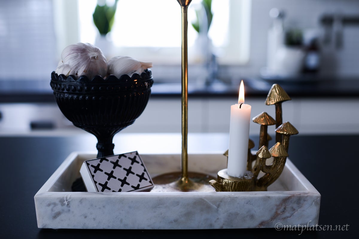 Marmorbrickan finns hos Jotex HÄR. Snygg att ha ljus på eller kryddkvarnar eller örter eller vad man vill.