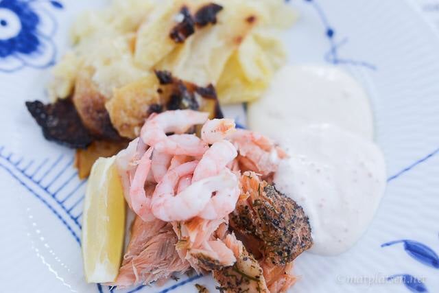 Onsdag: varmrökt lax med potatisgratäng, hjortronsås och romsås