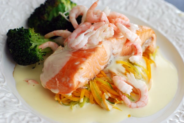 tisdag: Ungsbakad lax med grönsaker julienne och vitvinssås