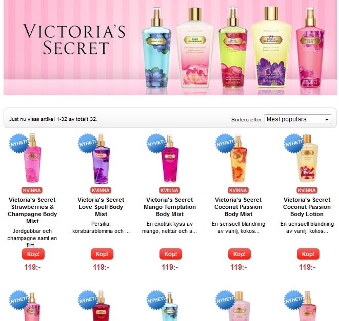 nu säljer Victoria´s Secret mists & bodylotion i alla möjliga och omöjliga färger och dofter. Weeeeeee!