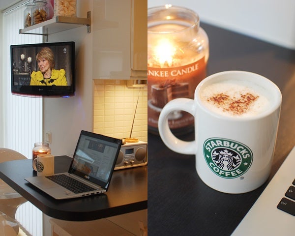 Älskar kontrasterna. I dag intages kaffet vid datorn i ett regnigt kallt Sverige med tofflor på fötterna och yllekofta på.