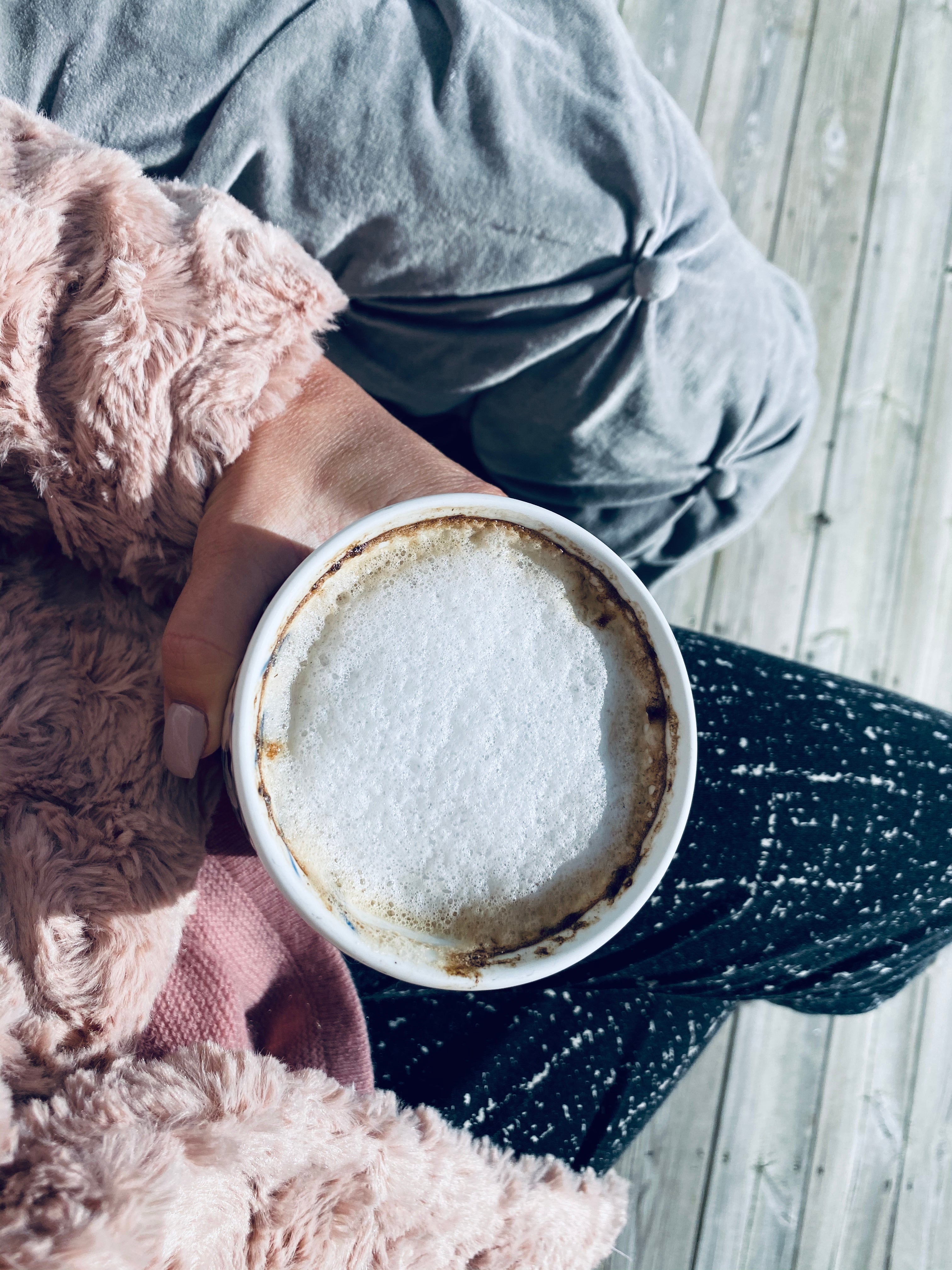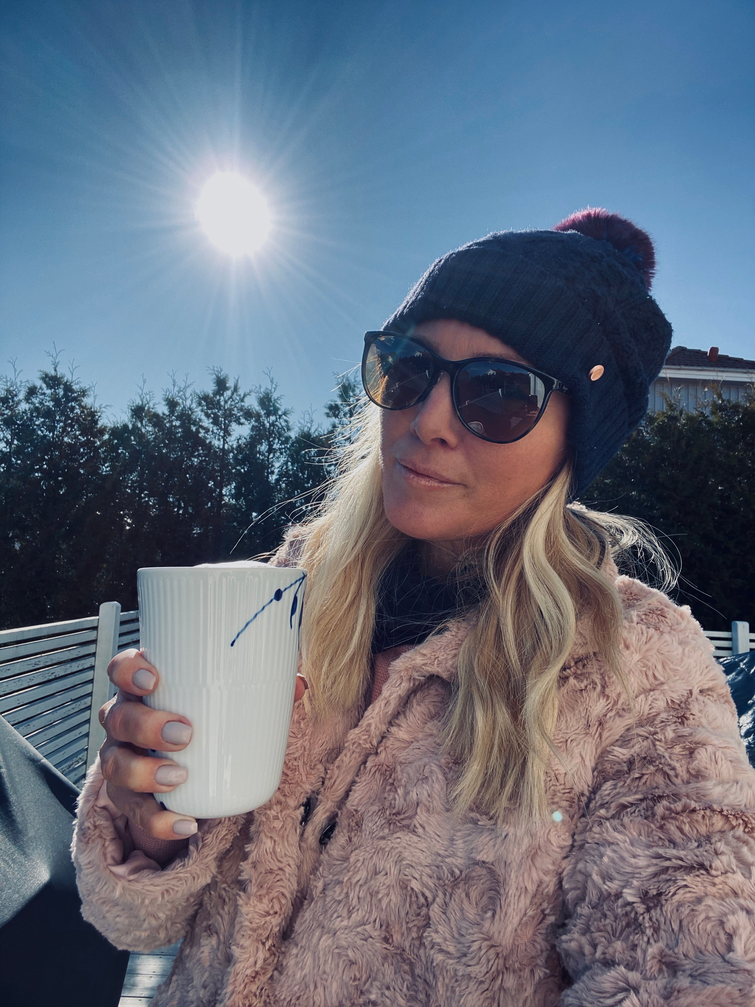 Och nu sitter jag hemma på altanen med årets första kaffe ute i vårsolen (här hemma i Sverige får jag väl tillägga, i Spanien har det blivit många) och njuuuter. Fågelkvitter, en och annan granne som fixar i trädgården, nån spelar musik och här sitter jag med mitt kaffe i mjukiskläder och rosa fuskpäls och känner solens strålar i ansiktet. Man riktigt känner hur de ger ett lyckorus i hela kroppen!