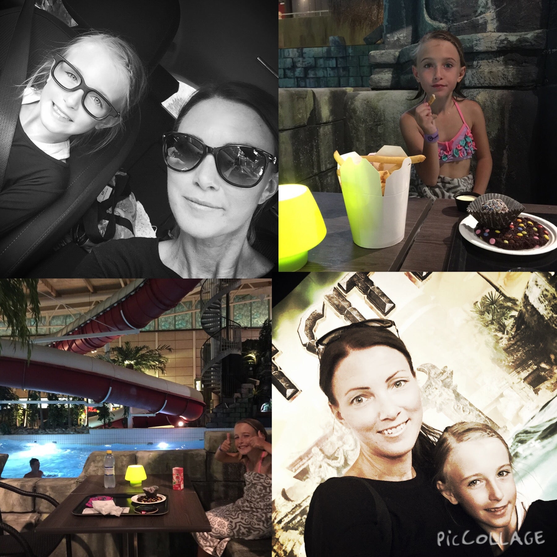 I går hade jag en mamma-dotter-kväll med Olivia. Hon fick önska aktivitet så vi åkte till Gustavsvik och badade. Var knappt en kotte där, så skönt. Åkte rutschkanor för glatta livet (som jag egentligen avskyr, jag är sååå harig) och började med att kasta oss ut i denna, gaaaah. Bäcksvart och stup – gissa pulsen! Men O tyckte det var hysteriskt kul. Sen fick hon välja vad hon ville till middag där inne, det blev pommes + chokladboll + nonstopcockie. Och i vilken ordning hon ville. Bästa dagen ever tyckte hon 🙂