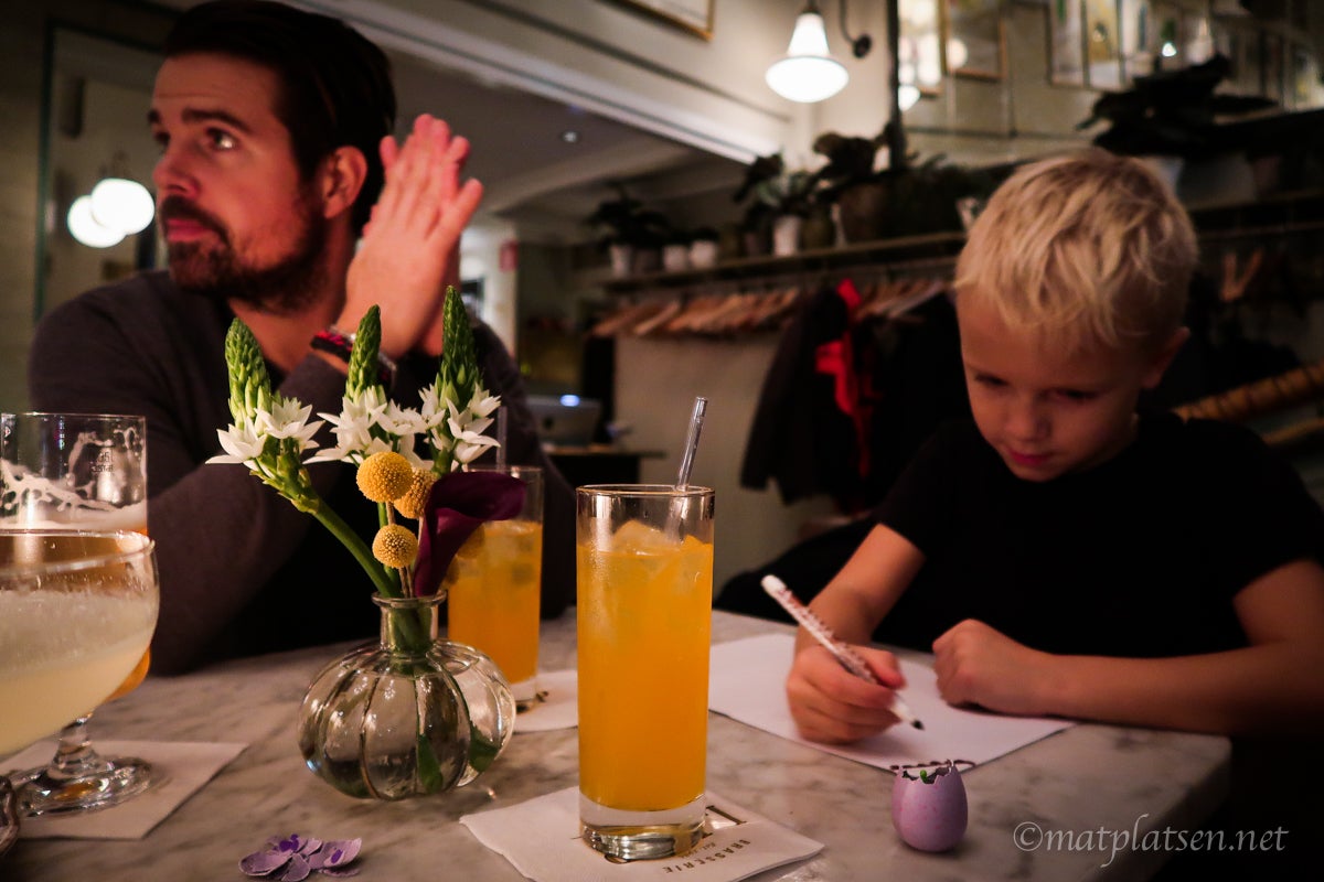 Bokade middag på Joe Farellis efter många läsartips. Bra och barnvänligt ställe med god mat. Valde kött men hamburgarna såg också goda ut, kanske dem de är mest kända för?! S åt en margarita och O nachos. Barnvänligt med pyssel innan maten men det var ganska dyrt. Min köttbit kostade över 400 kr och Olivias barnportion nachotallrik (bara nachos och ost) 135 kr, en barnpizza 99 kr. Men som sagt väldigt gott, köttet var perfekt stekt, goda tillbehör och trevlig servitris.