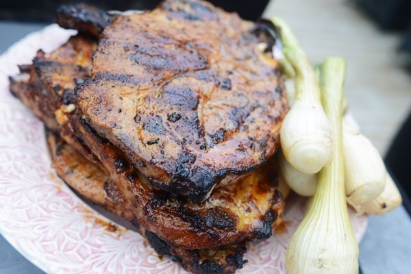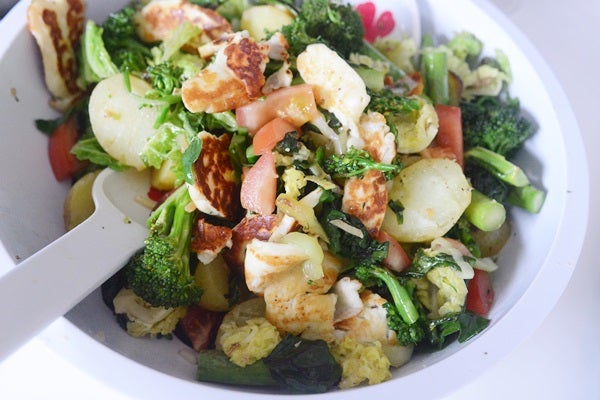I salladen var uppfräst kålmix, grön sparris och broccoli, stekt haloumi, kokt färskpotatis, färska tomater och stekt pak Choi. Sååå himla gott!! Och detta serverades till grillad fläskkarré, lök och gorgonzolasås. Till detta vårt favvo-vin just nu, en ny BIB som är gryyyym.