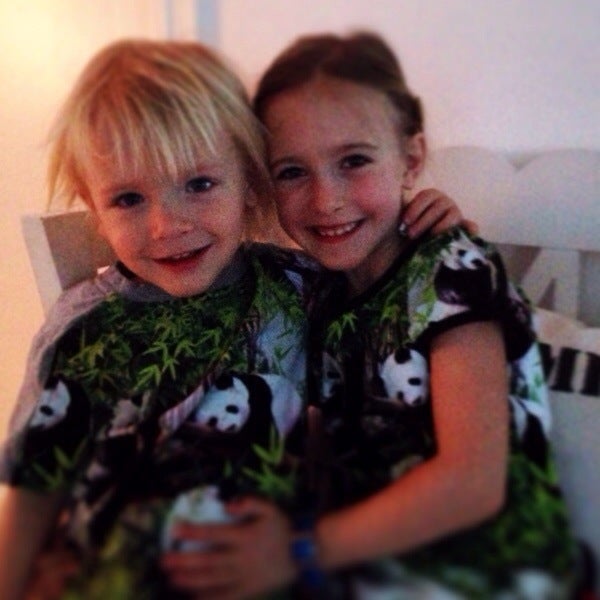 Barnen vaknade på allra bästa humör i morse, sams och glada och klädde sig i likadana kläder. Hann inte fota dem med kameran men på Instagram såg det ut så här: