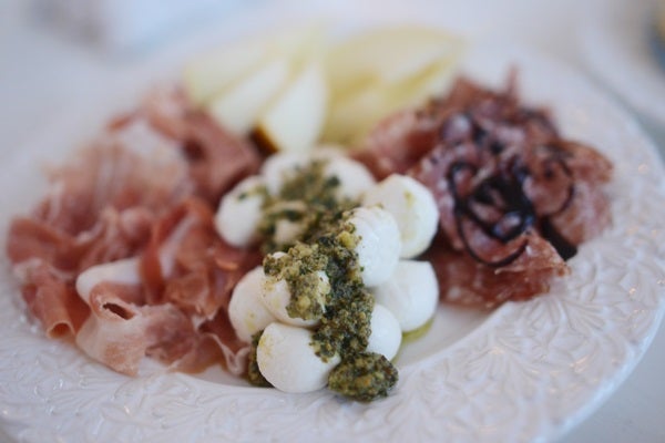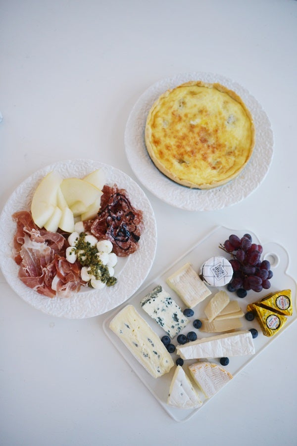 Förutom ostar och kex så hade vi salami, parmaskinka, mozzarellabollar med pesto, honungsmelon och en krämig gorgonzolapaj.